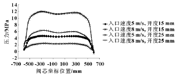 為了研究閥在不同工況下的特性,分別在閥不同開度下,以入口速度和出口壓力為邊界條件進行了仿真計算。
